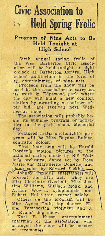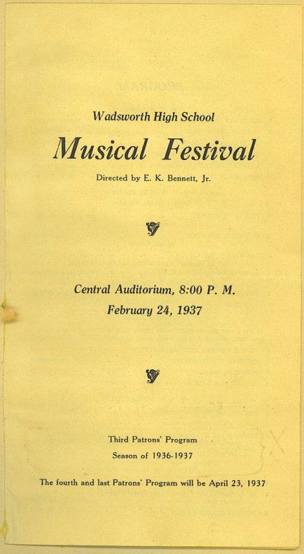 In February of 1937, my students performed in a Music Festival at Wadsworth High School.