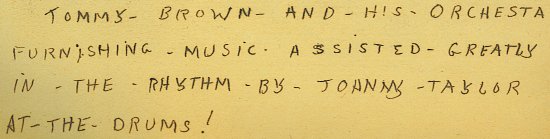 From March, 1936 until mid-February, 1937, I played the drums in Tom Brown's Orchestra.
