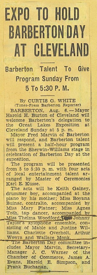 One day was allocated to feature Barberton's talents, including, of course, Johnny Taylor's xylophonists.