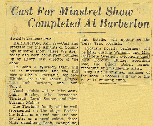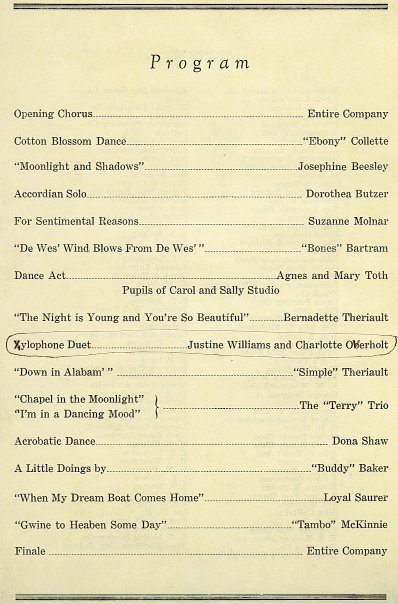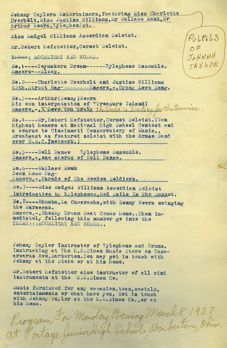 Music was my life during the 1930s. I was a performer, I wrote the musical arrangements for my orchestra, and I also taught others to play percussion instruments. I was very proud of my students.