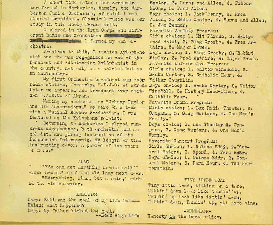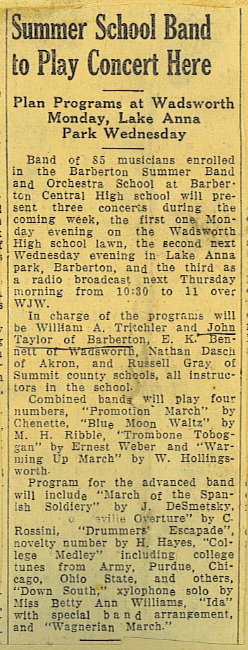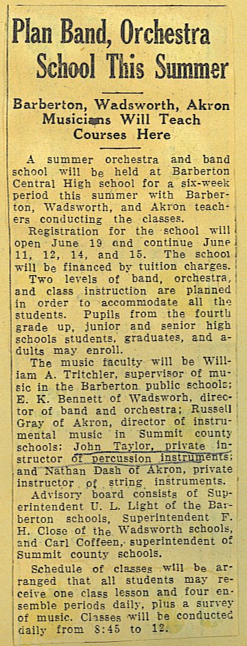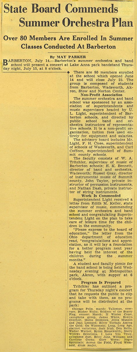 In 1937, the Superintendents and music directors of several scools organized a non-profit summer orchestra school held at Barberton High School. Read on!