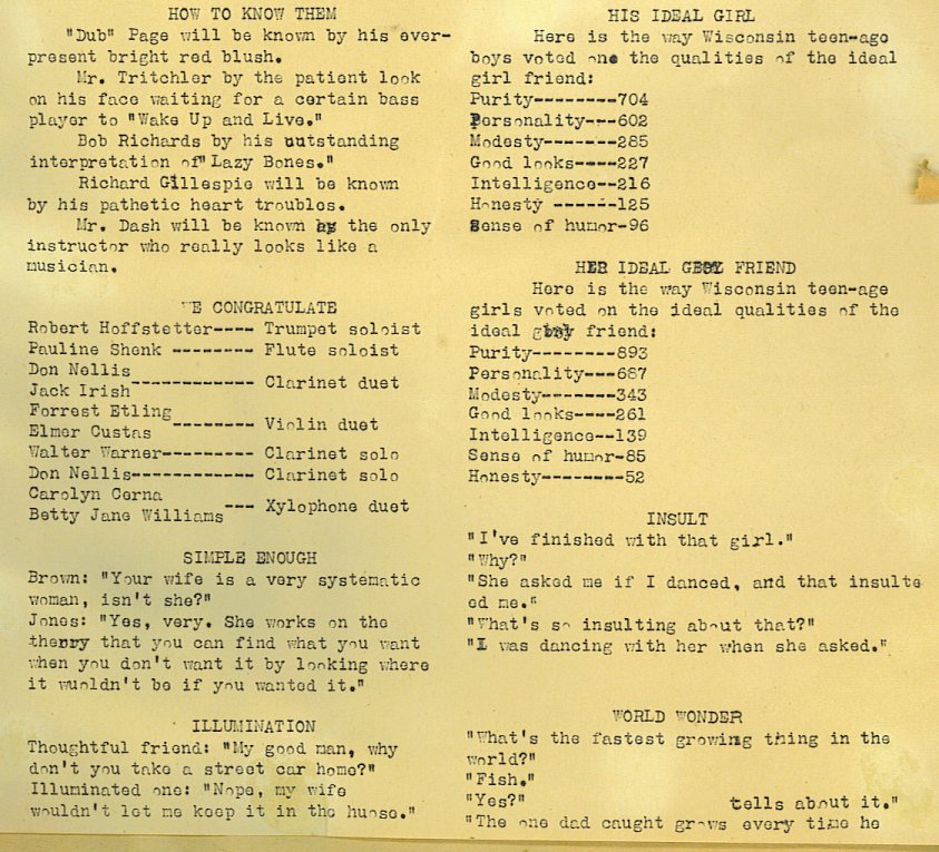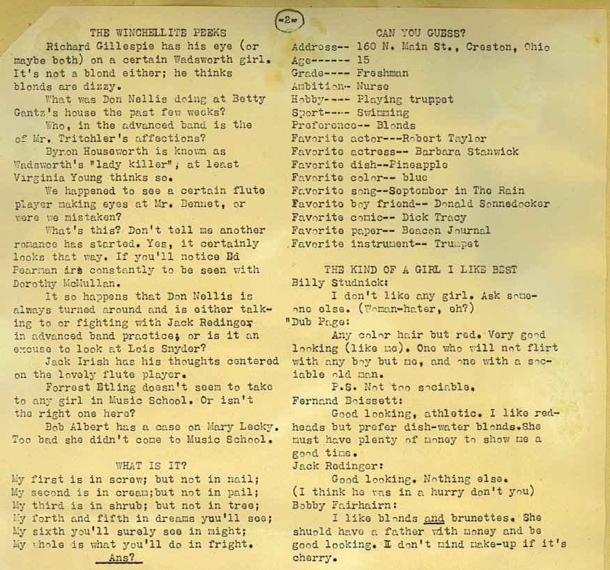 The Summer Orchestra School published a newspaper. Edition number 1, page 1 of 2 appears below.
